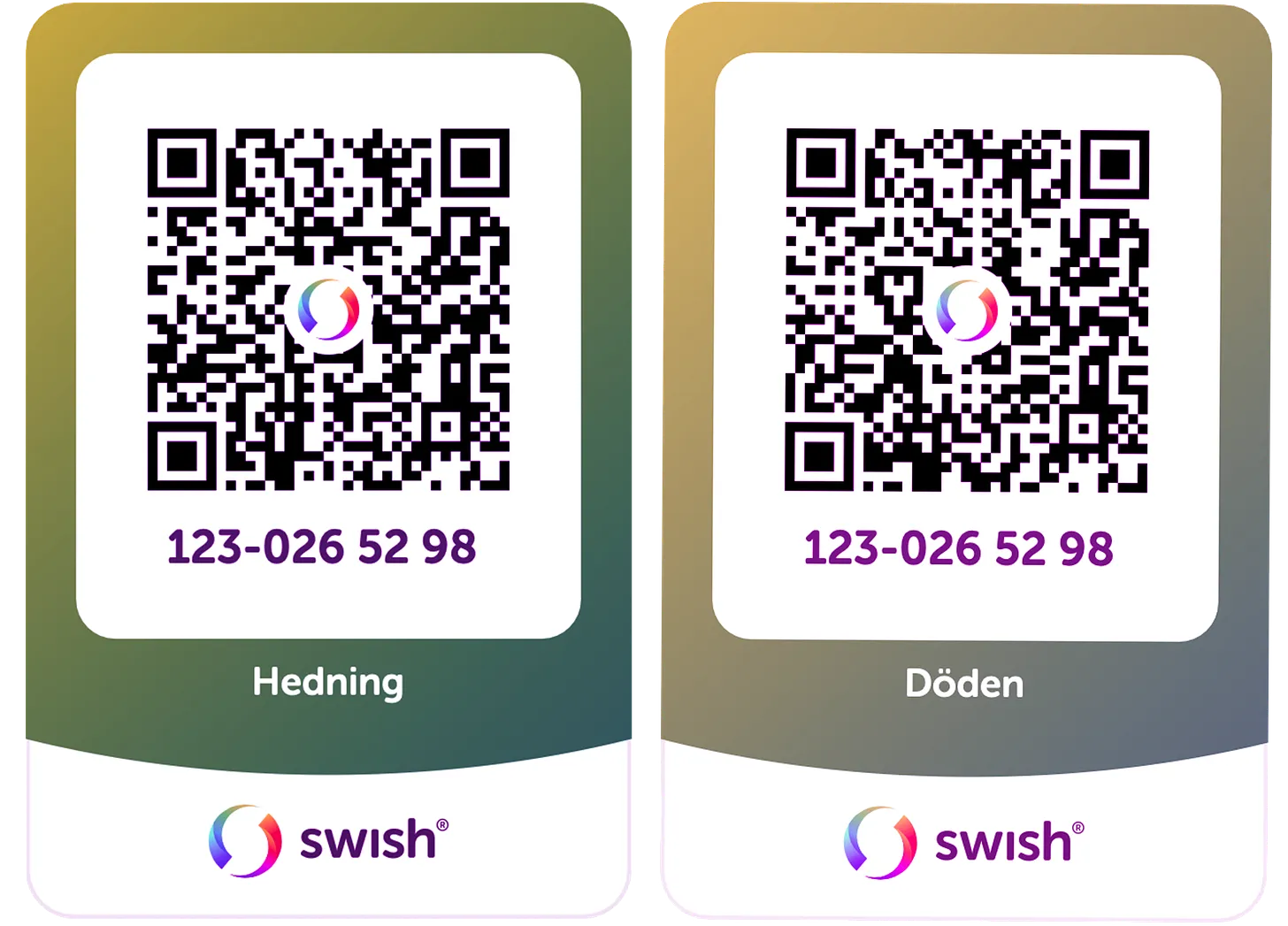 Swish: 123 0265 298 – ange "Gåva Hedning" eller "Gåva Döden" som meddelande.
